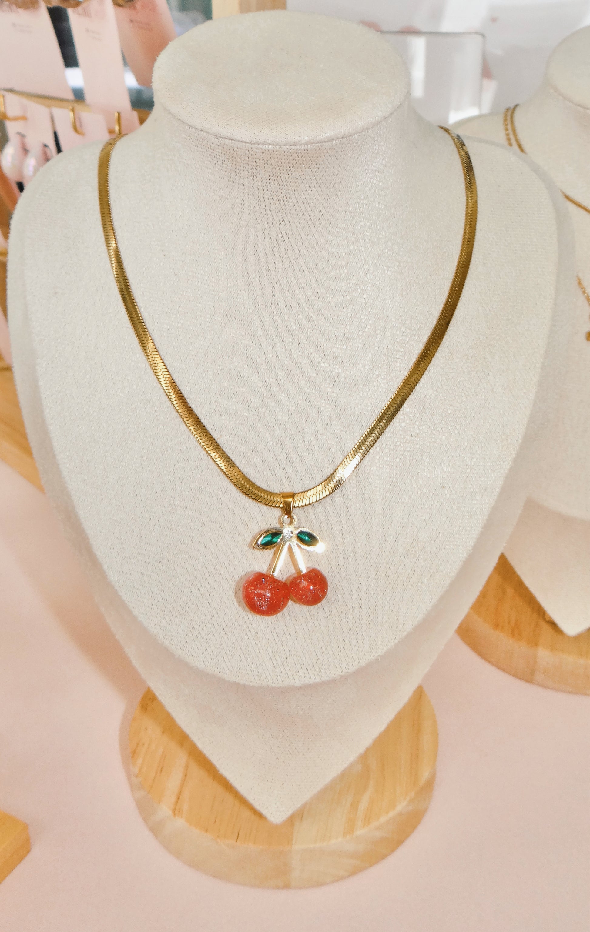 Add the perfect finishing touch to your outfit with our newest addition, the Cherry on Top necklace. This playful and quirky accessory is sure to make a statement and add a touch of fun to any look. Get ready to be the cherry on top of every outfit!