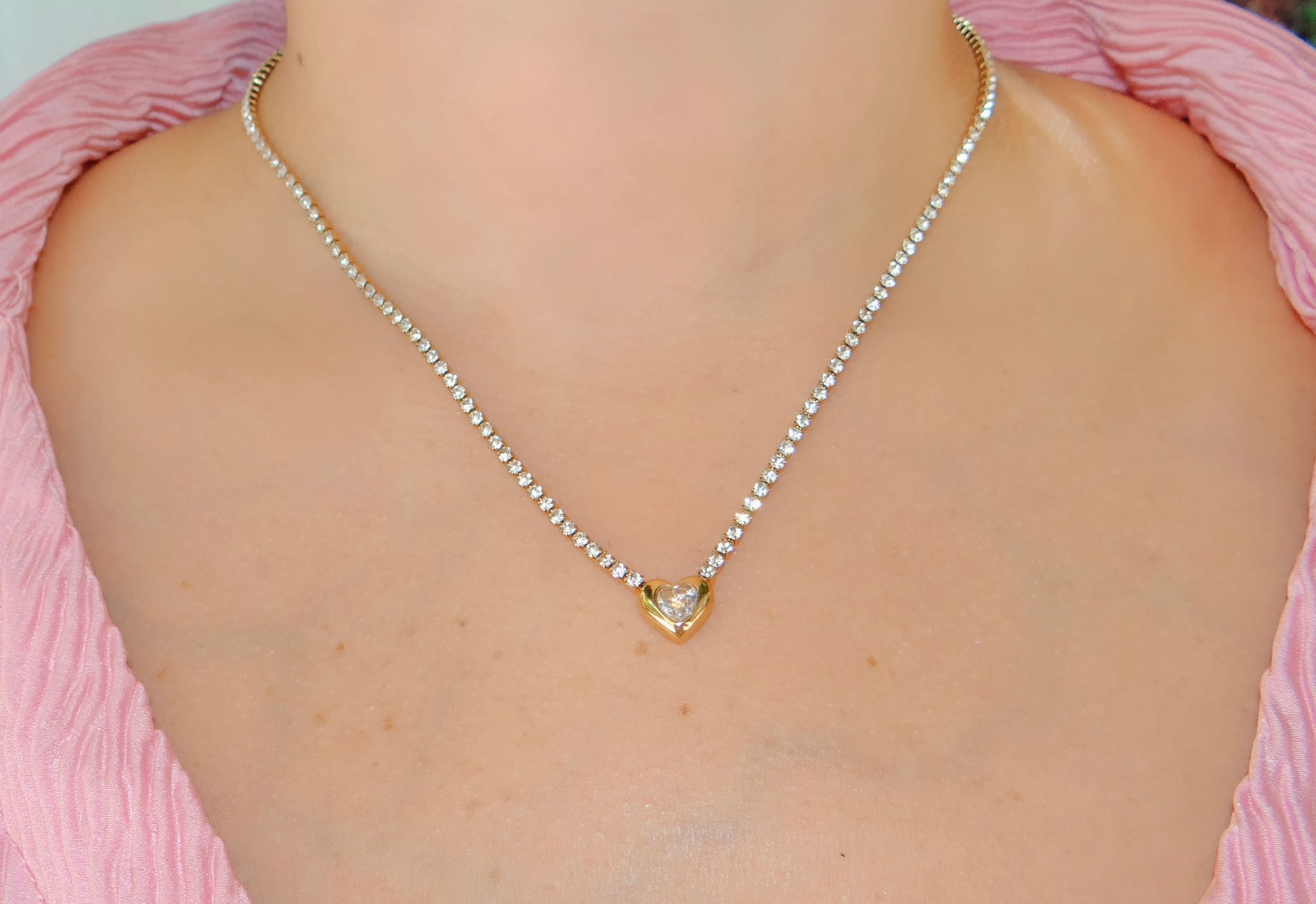 Introducing Corazoncito, the perfect necklace for adding some sparkle to your outfit. This unique necklace is filled with zirconia diamonds, giving it a playful and eye-catching look. Bring some fun and shine to your accessories collection with Corazoncito!