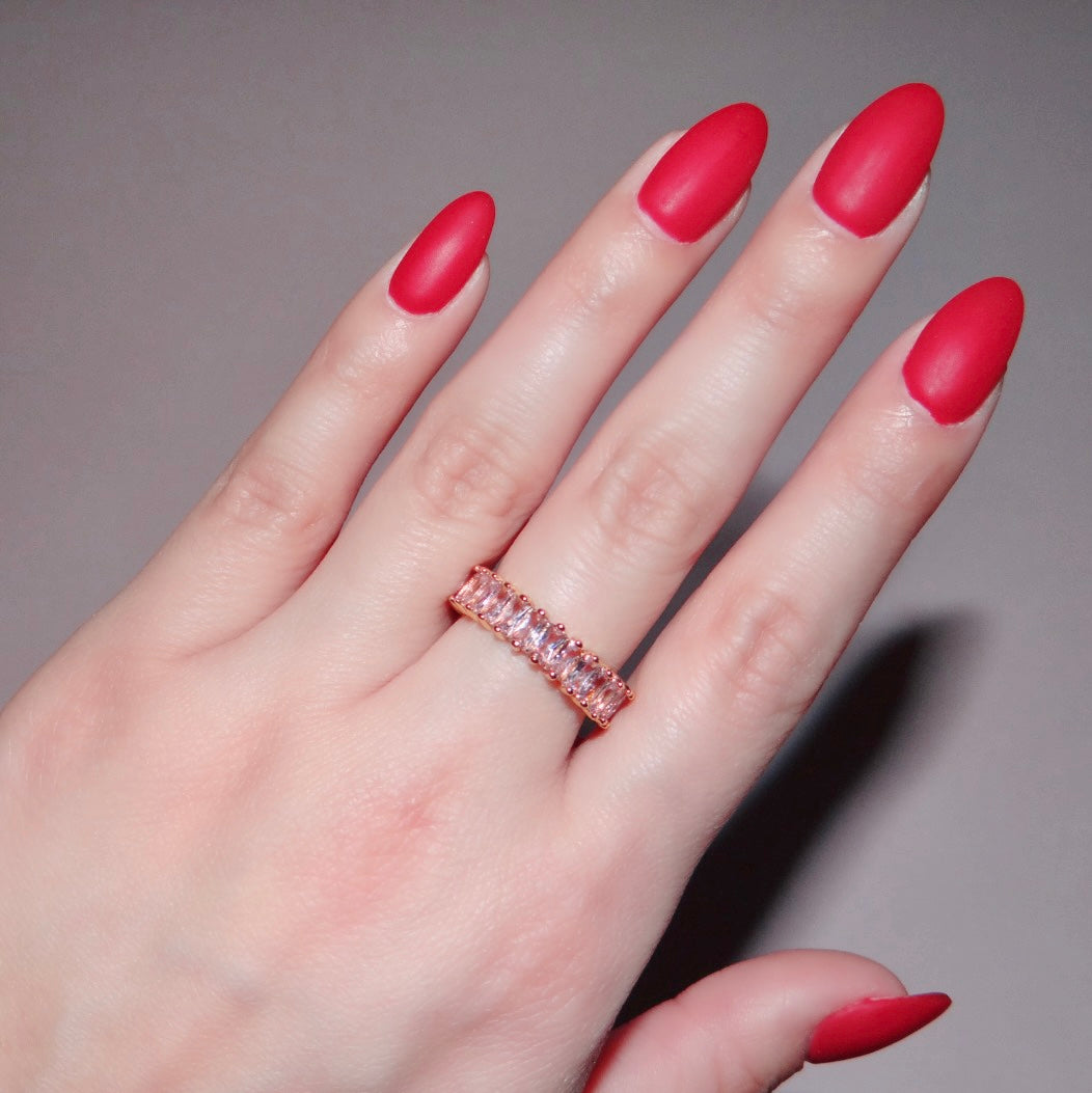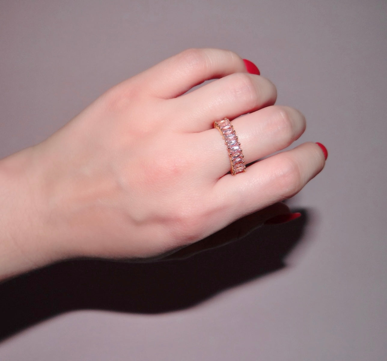 "Add a pop of color to any outfit with our Pretty in Pink ring, featuring a sparkling zirconia-wrapped pink diamond. Don't be afraid to let your bold and playful side shine through with this unique and eye-catching accessory.
