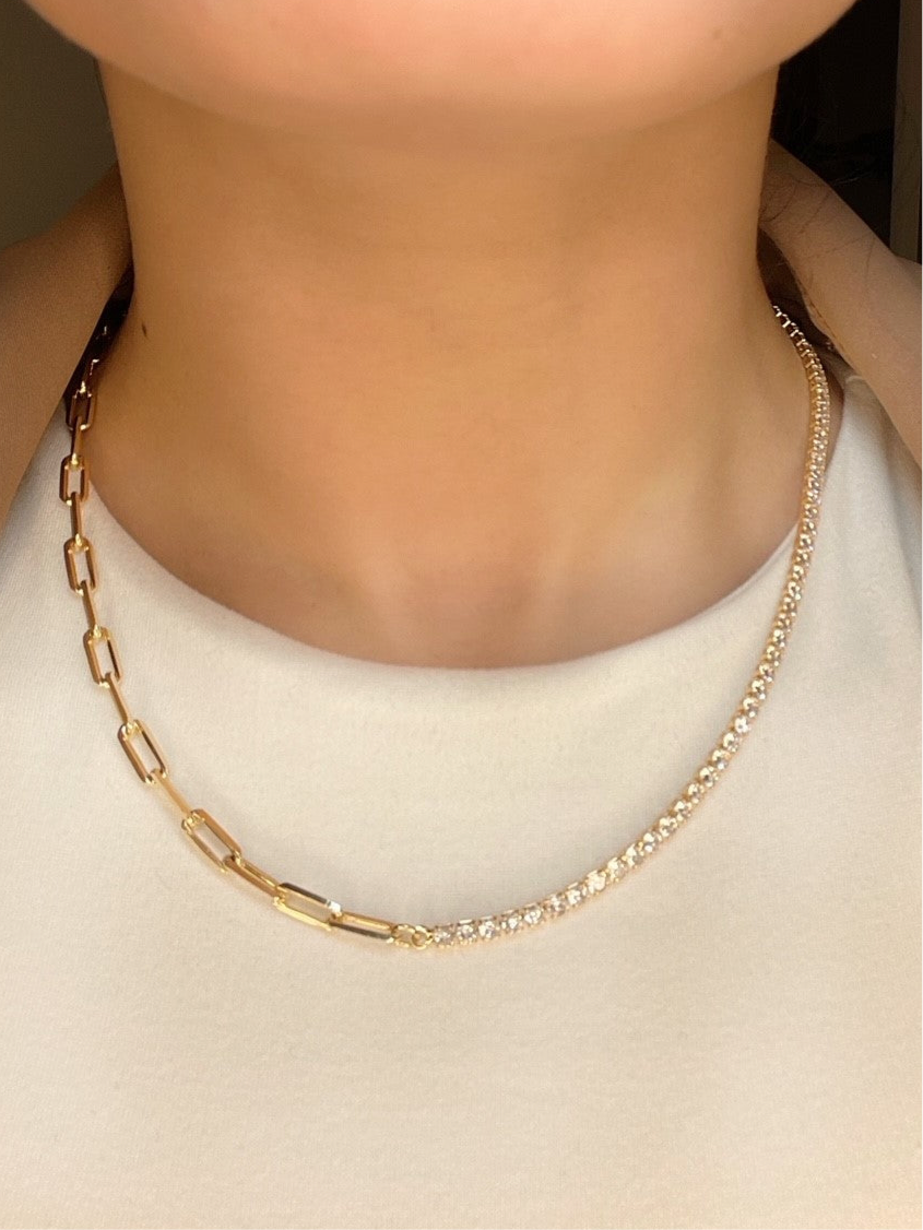 Introducing Shine Bright - the elegant and unique necklace that combines the functionality of a paperclip with the timeless beauty of a diamond. This versatile piece is perfect for any occasion, adding a touch of sophistication and sparkle to any outfit. With its half paperclip, half diamond design, Shine Bright is sure to make a statement and elevate your style.